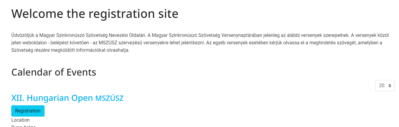 Ehhez nyomja meg a kezdőoldalon a versenynaptárban a kívánt verseny alatt a Registration gombot. - Versenyszám kiválasztása